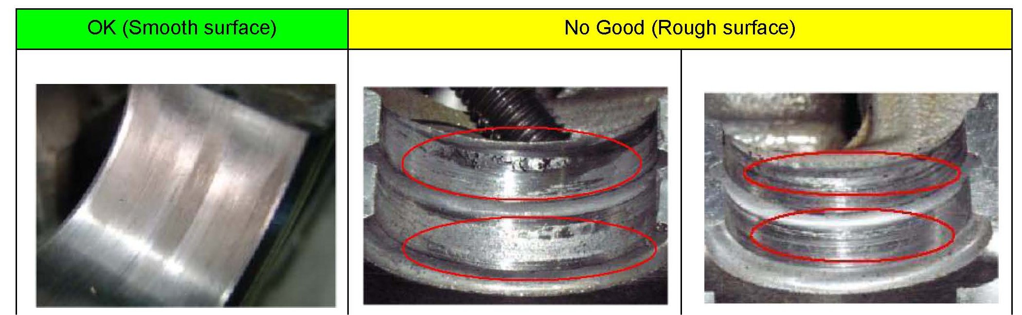 ^ Check for any visual damage. Cam surface should be smooth.