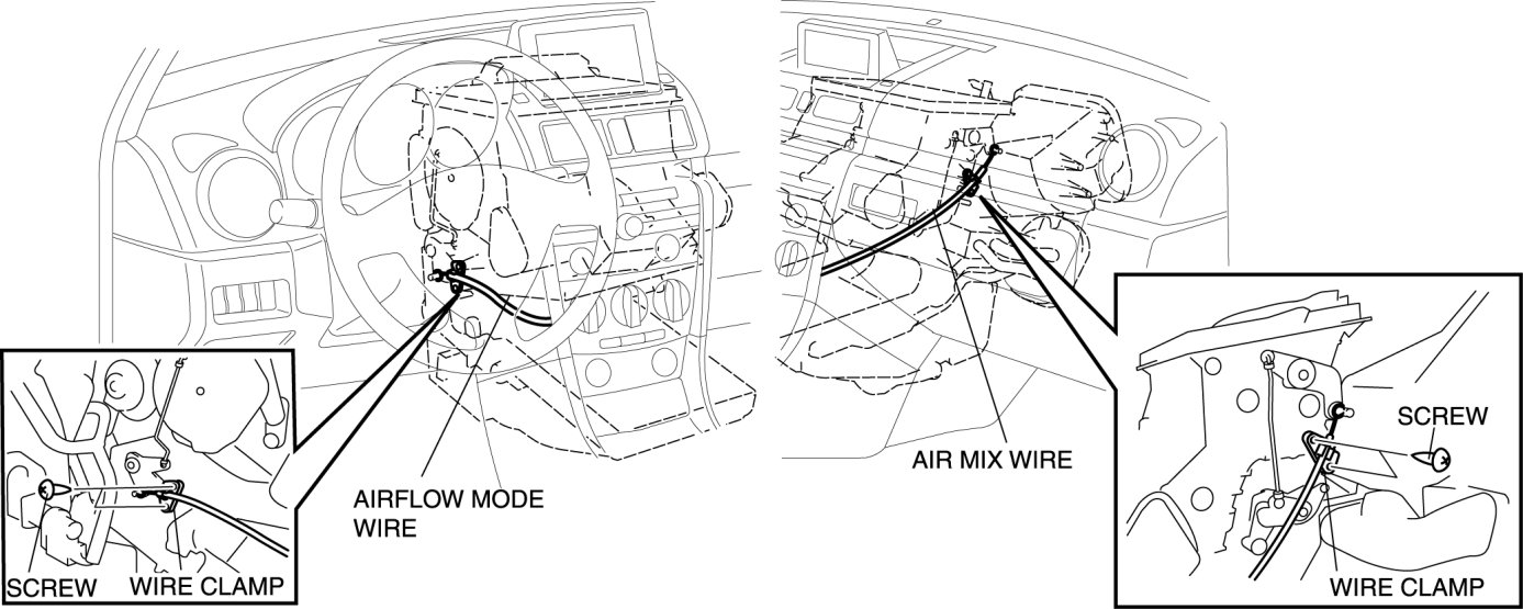 6. Remove the air mix wire and airflow mode wire.