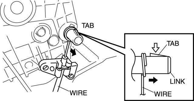 a. Pull the wire in the direction shown by the arrow and remove it while pressing the link tab.
