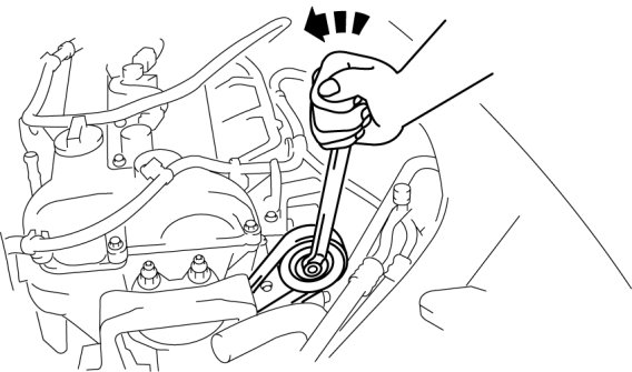 3. Turn the center of the auto tensioner pulley counterclockwise to release tension to the drive belt tension.