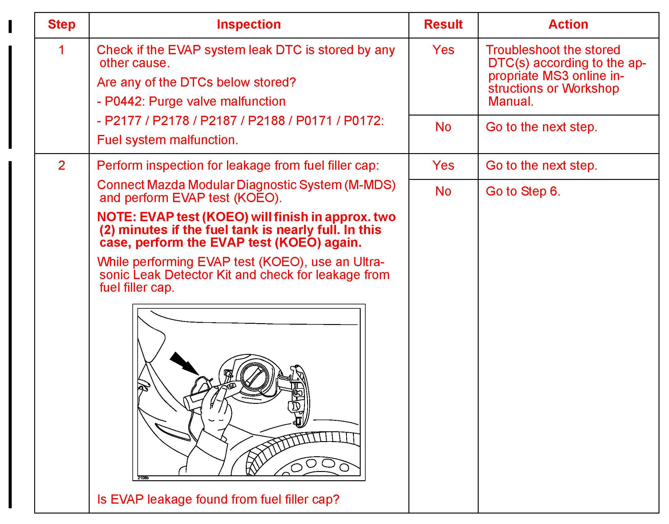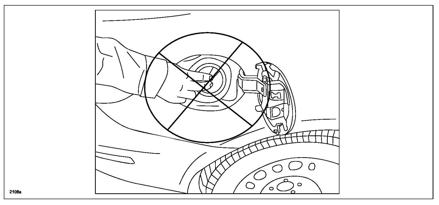 ^ When diagnosing an evaporative emissions leak from the fuel filler cap, DO NOT TOUCH the fuel filler cap.