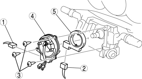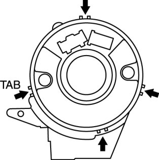 1. Detach the tabs at the four locations shown in the figure and remove the steering angle sensor.
