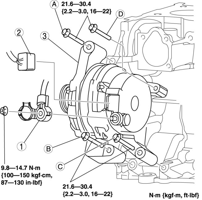 2. Securely tighten the generator installation bolts in the order of A, B, C, and D.