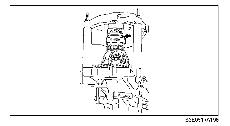 17. Install the required adjustment shim and tap the bearing race into the converter housing.
