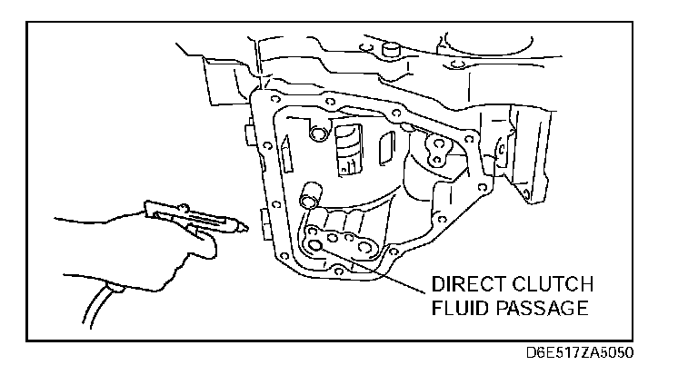 2. Remove the direct clutch piston from the direct clutch drum by applying compressed air through the fluid passage.