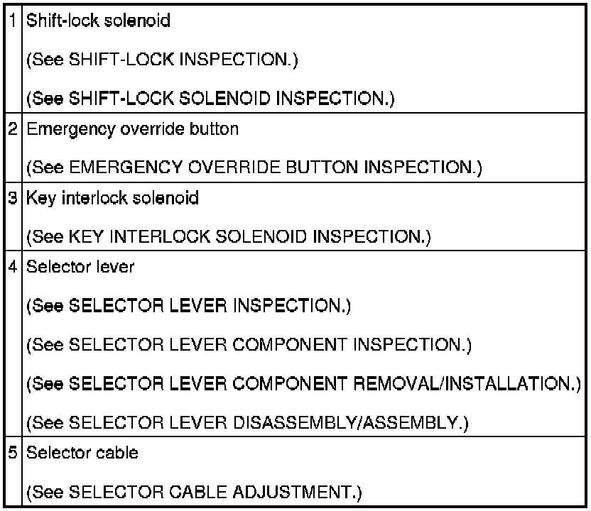 AUTOMATIC TRANSAXLE SHIFT MECHANISM LOCATION INDEX