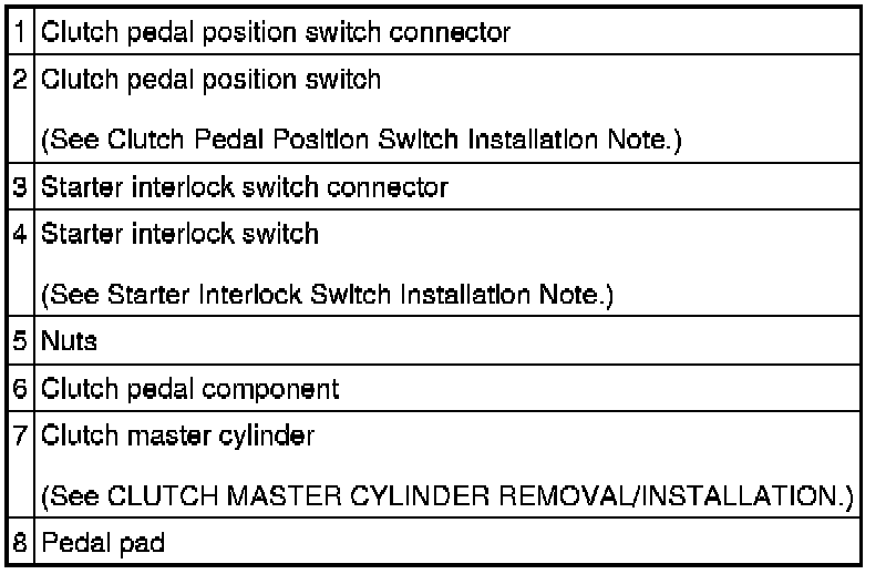CLUTCH PEDAL REMOVAL/INSTALLATION