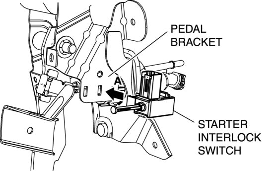 1. Insert the new starter interlock switch into the pedal bracket hole in the direction indicated by arrow A.