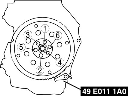 5. Tighten the drive plate mounting bolts in two or three steps in the order as shown in the figure.