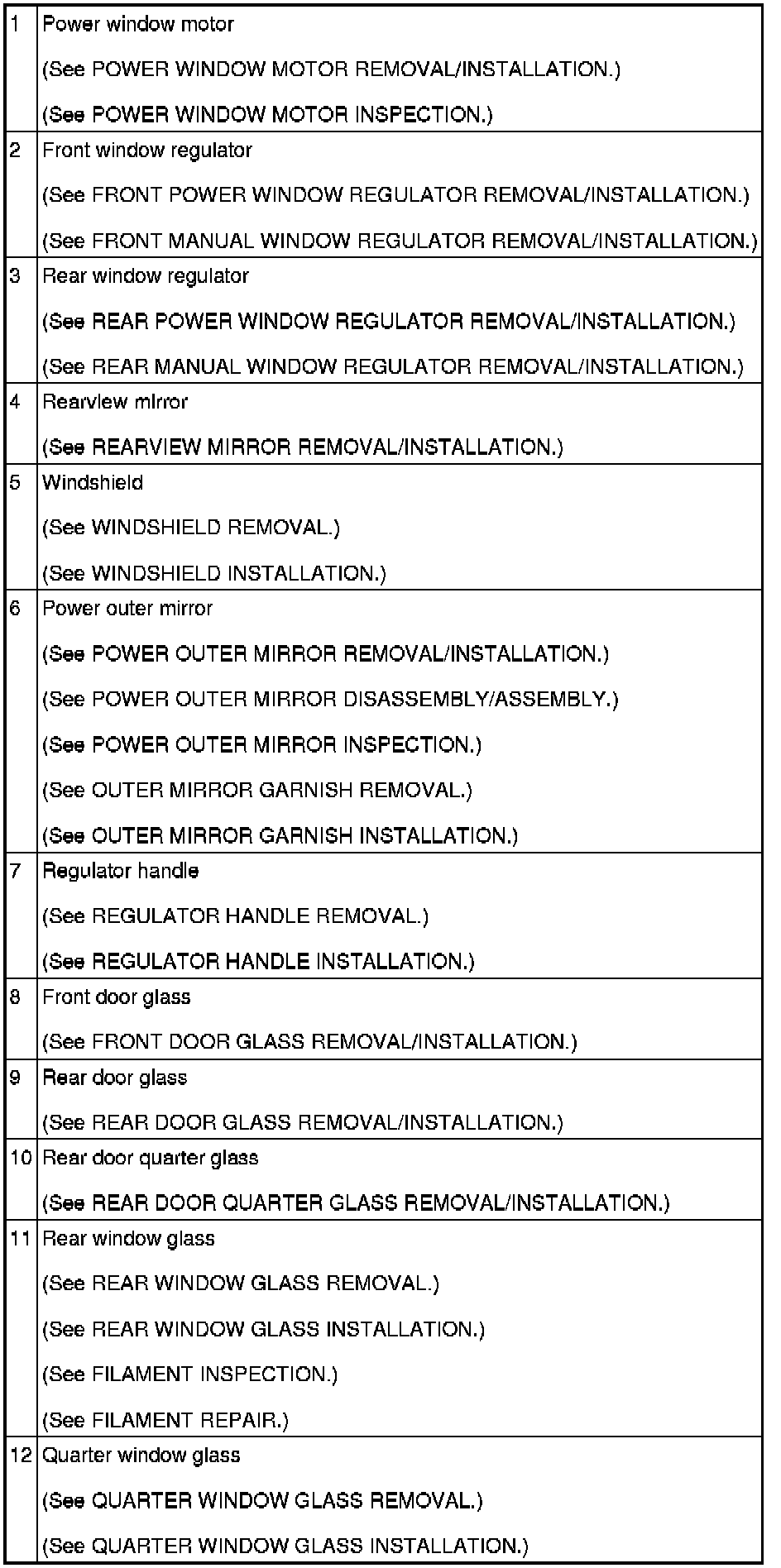 GLASS/WINDOWS/MIRRORS LOCATION INDEX