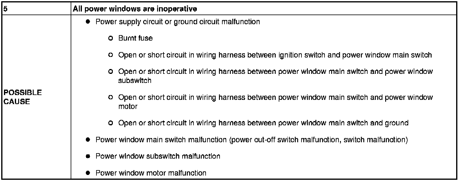 No.5 ALL POWER WINDOWS ARE INOPERATIVE [POWER WINDOW SYSTEM]