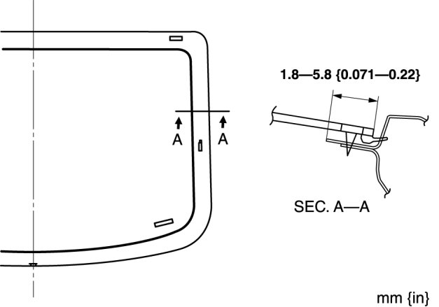 9. Press completely along the perimeter of the glass so that the measurement of the molding lip gap is within the specification.