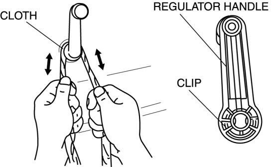 1. Using a cloth, remove the regulator handle installation clip and remove the regulator handle.