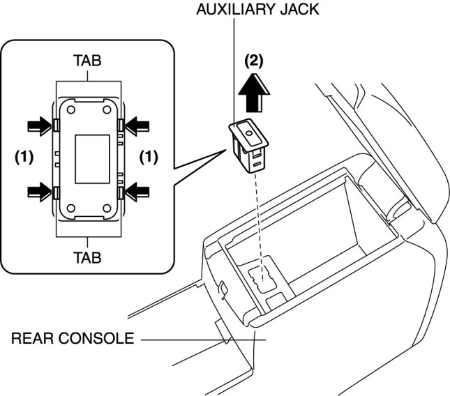 3. Remove the auxiliary jack in the direction of the arrow (2) shown in the figure while pressing the auxiliary jack tabs in the direction of the arrow (1).
