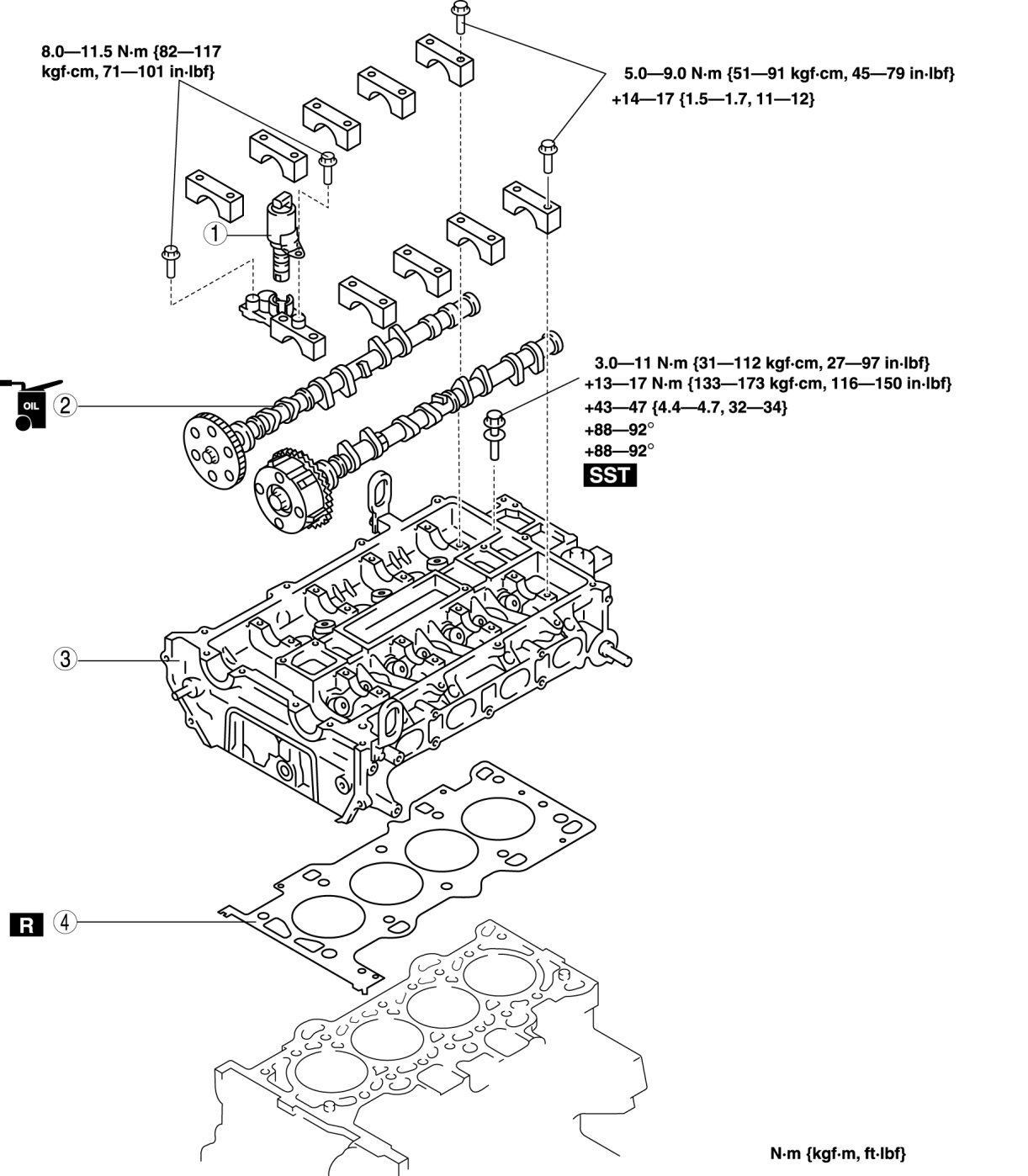 - 14-17 Nm {1.5-1.7 kgf-m, 11-12 ft-lbf}