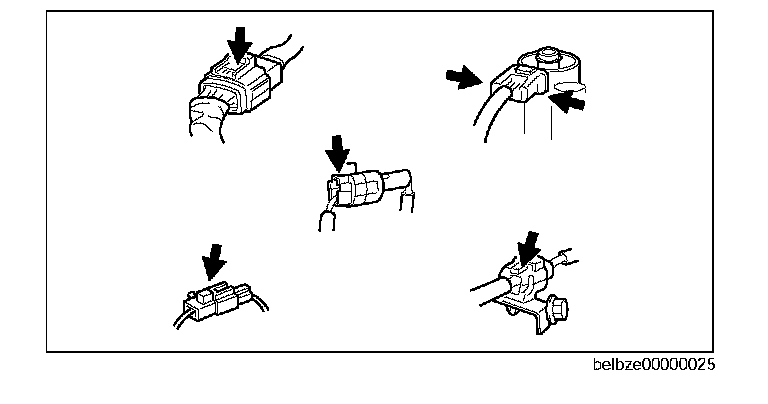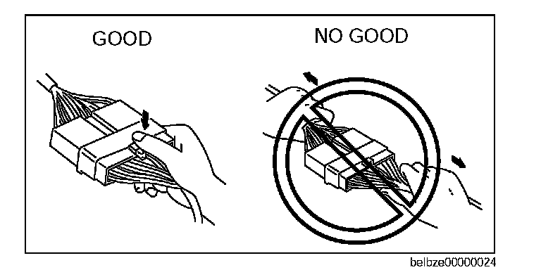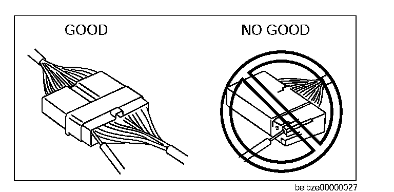 ^ Inspect the terminals of waterproof connectors from the connector side since they cannot be accessed from the wiring harness side.