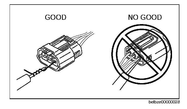 ^ To prevent damage to the terminal, wrap a thin wire around the tester probe before inserting into terminal.
