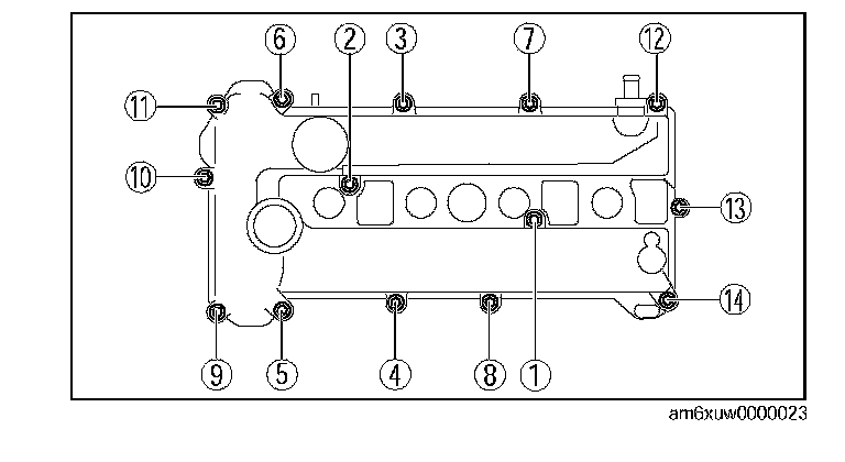 ^ Install the cylinder head cover within 10 min of applying the silicone sealant.