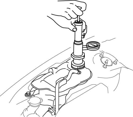 3. Install a commercially available radiator cap tester to the coolant reserve tank filler port.