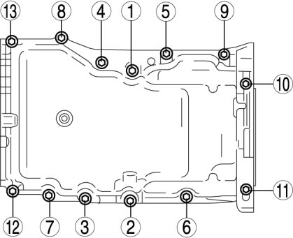 Tighten the bolts in the order shown in the figure.Tightening torque 17-23 Nm {1.8-2.3 kgf-m, 13-16 ft-lbf}