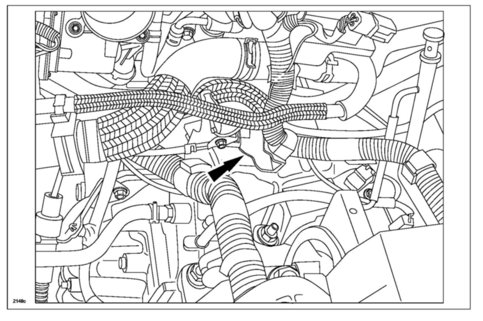 5. Remove air cleaner assembly (B), fresh air duct (C) and air hose (A).