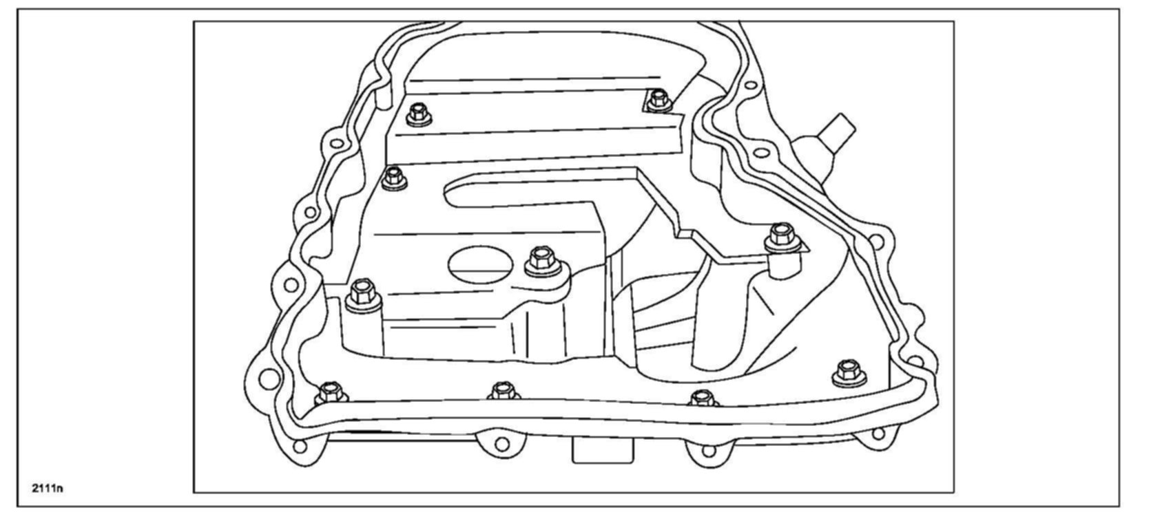 When reusing oil pan installation bolts, clean any old sealant from the bolts. Using bolts with the old seal adhering could cause cracks in the housing.
