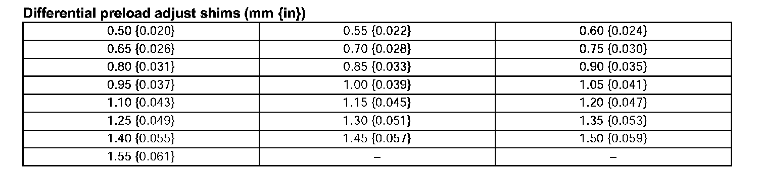 Preload: 1.4-2.3 Nm (14-24 kgf-cm, 12-20 in. lbf.)
