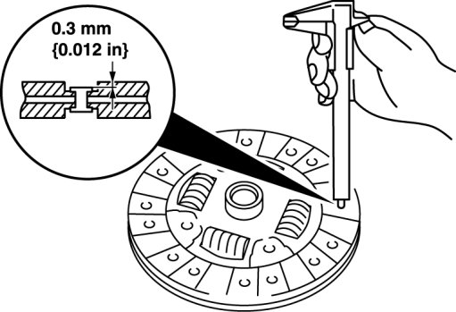 1. Using vernier calipers, measure the thickness of the lining at a rivet head on both sides.