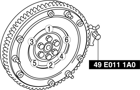 5. Gradually tighten the flywheel lock bolts in a crisscross pattern.