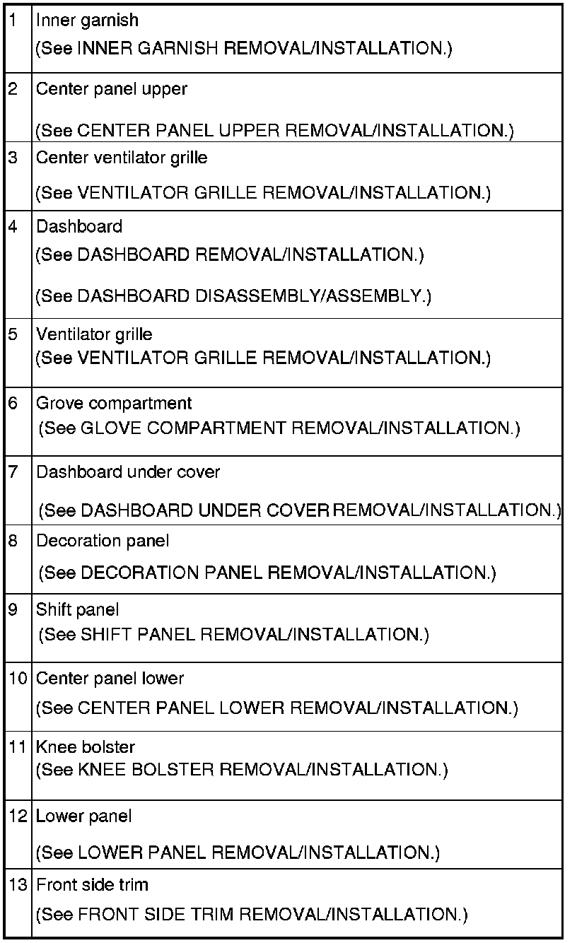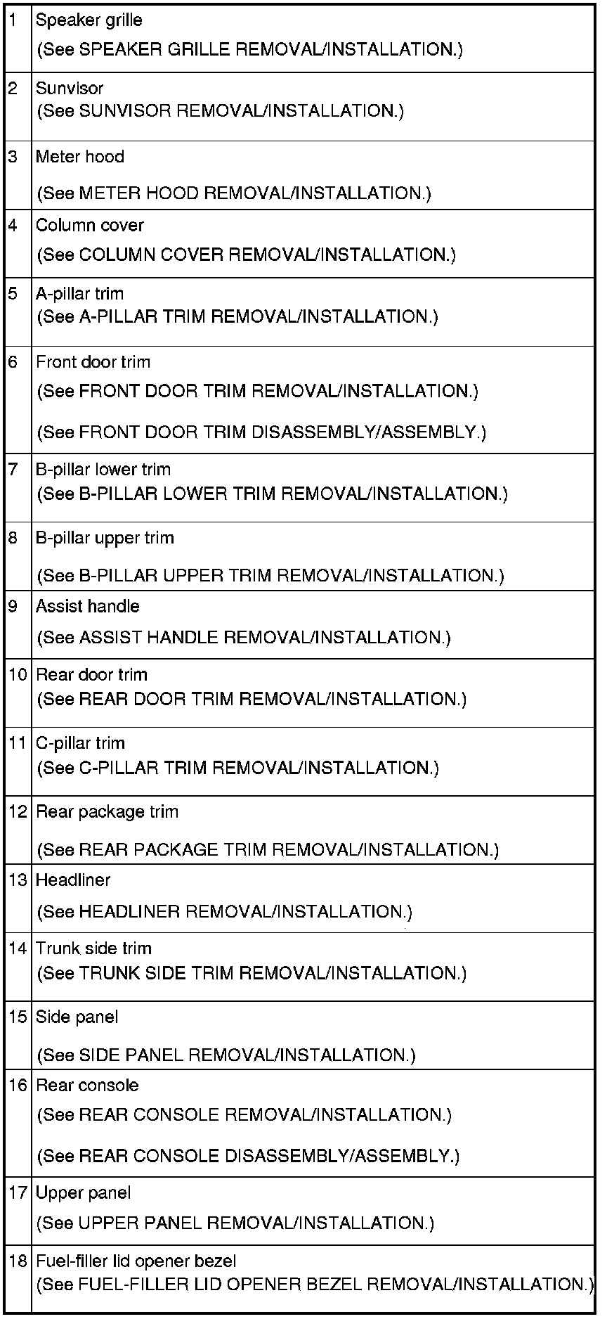 INTERIOR TRIM LOCATION INDEX