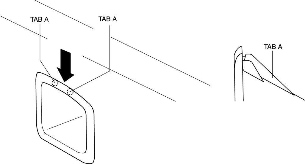 1. Insert a fastener remover in the position indicated by the arrow in the figure and detach tabs A.