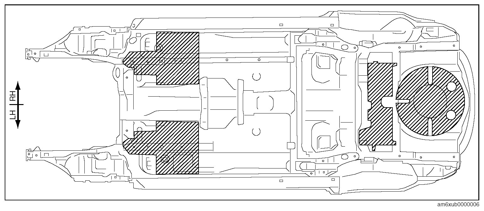 After repairing the body, attach the damping sheet to the location shown in the figure for noise insulation.