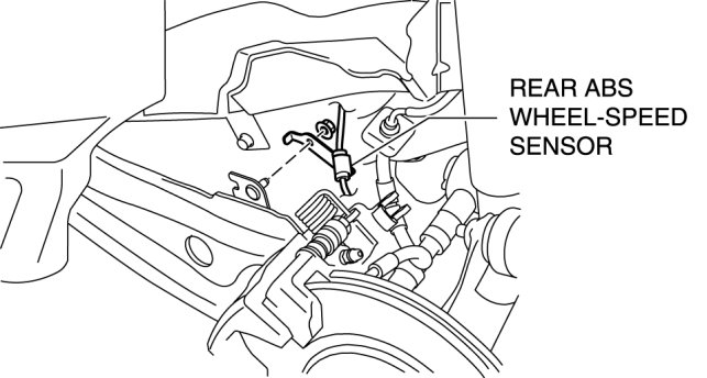 1. Disconnect the rear ABS wheel-speed sensor as shown in the figure. Rear ABS Wheel-Speed Sensor Removal/Installation