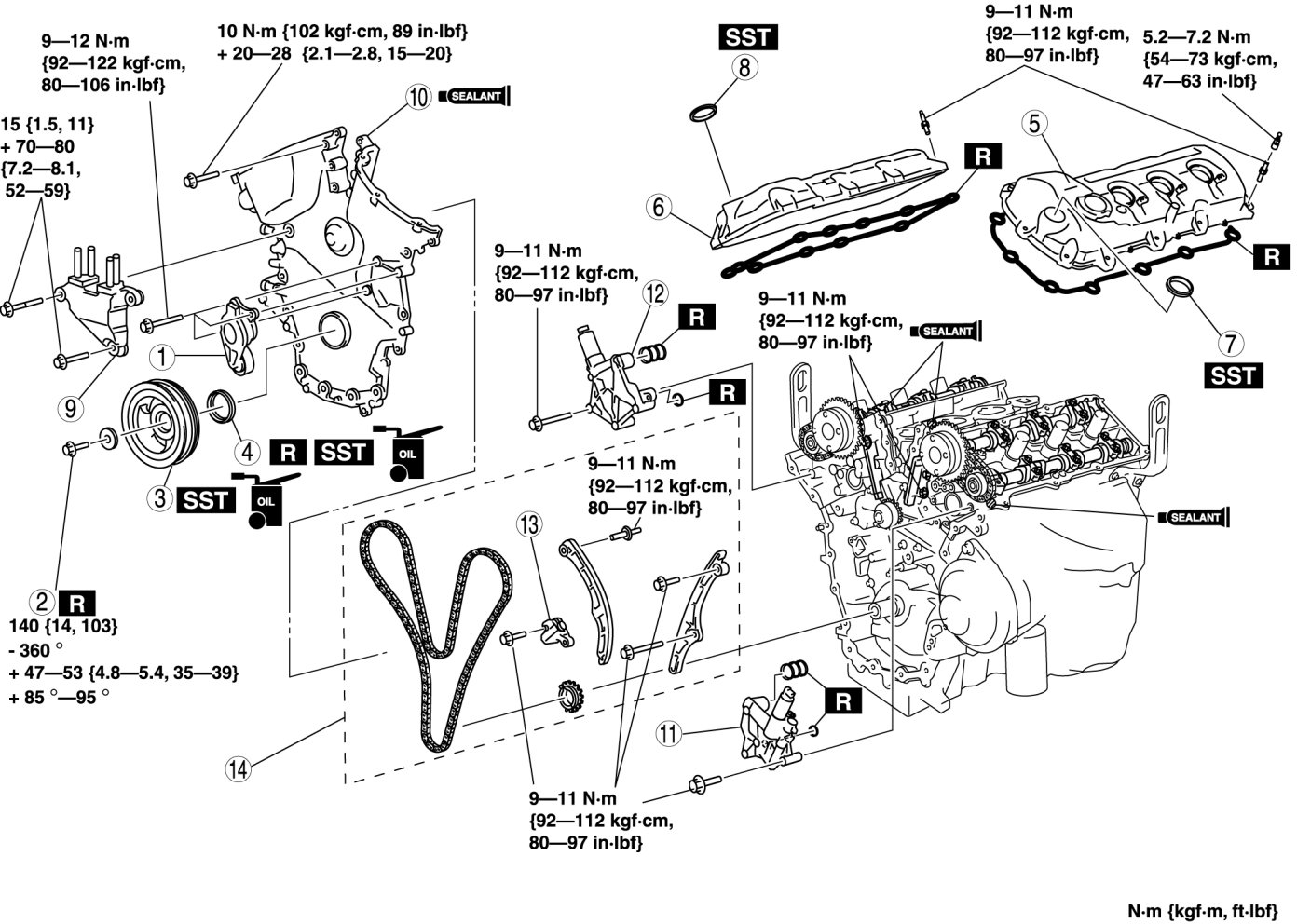 - Install the engine front cover and No.3 engine mount bracket bolts within 10 min of applying the silicone sealant.