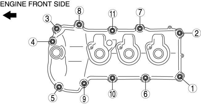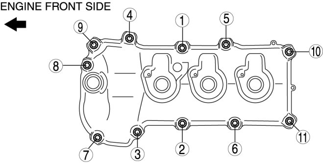 b. Tighten the engine front cover bolts in the order in 2 steps in the order shown in the figure.