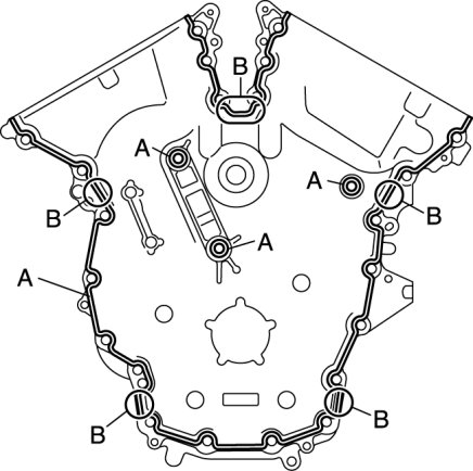 1. Apply the silicon sealant (Loctite 5900) to the engine front cover shown in the figure.