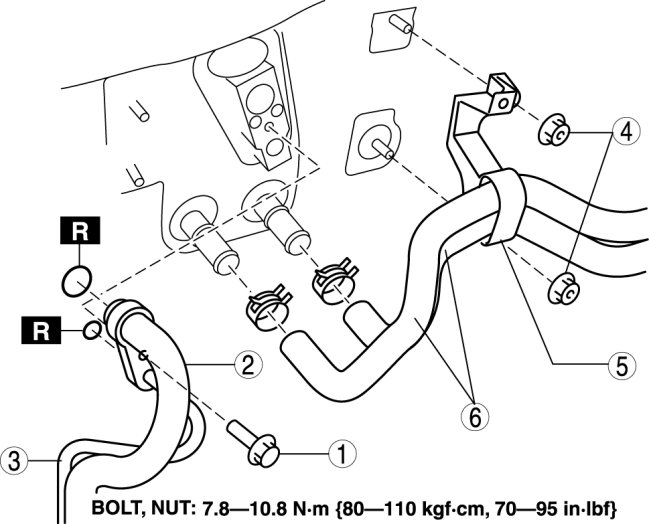 5. Disconnect from A/C unit in the order indicated in the table. Do not allow compressor oil to spill.