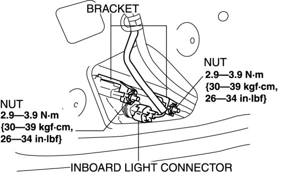 4. Disconnect the inboard light connector, then remove the nuts and brackets.