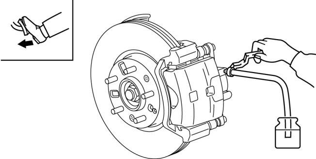 4. A second person should loosen the bleeder screw, drain out the fluid and close the screw using a commercially available flare nut wrench.