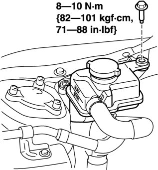 1. Remove the bolt shown in the figure, and position the power steering fluid reservoir out of the way.