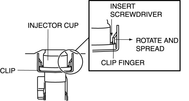 1. Insert a screwdriver between the injector cup and the clip fingers.