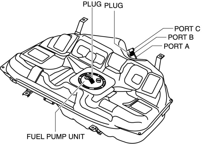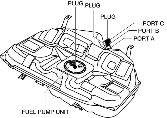 a. Plug the fuel pump unit pipe, ports B and C.