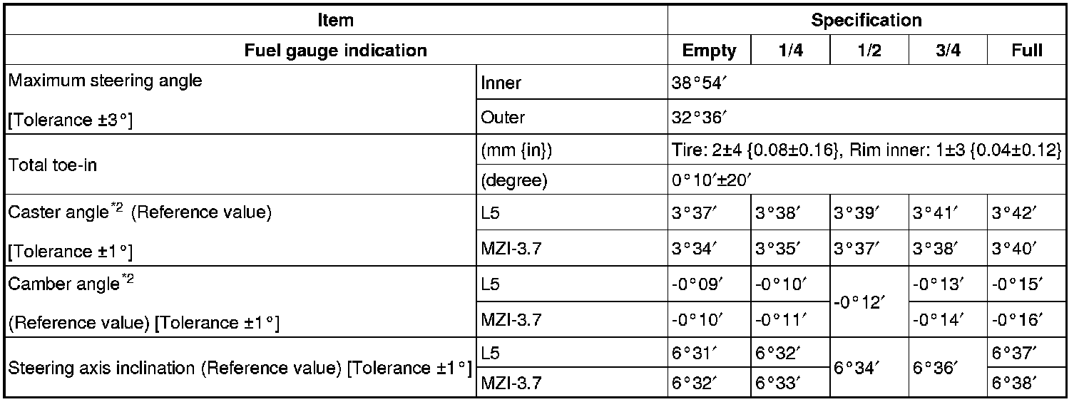 Front wheel alignmen (Unloaded)*1