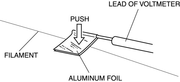 3. Connect the positive lead of the tester to the positive side of each filament and the negative lead to ground.