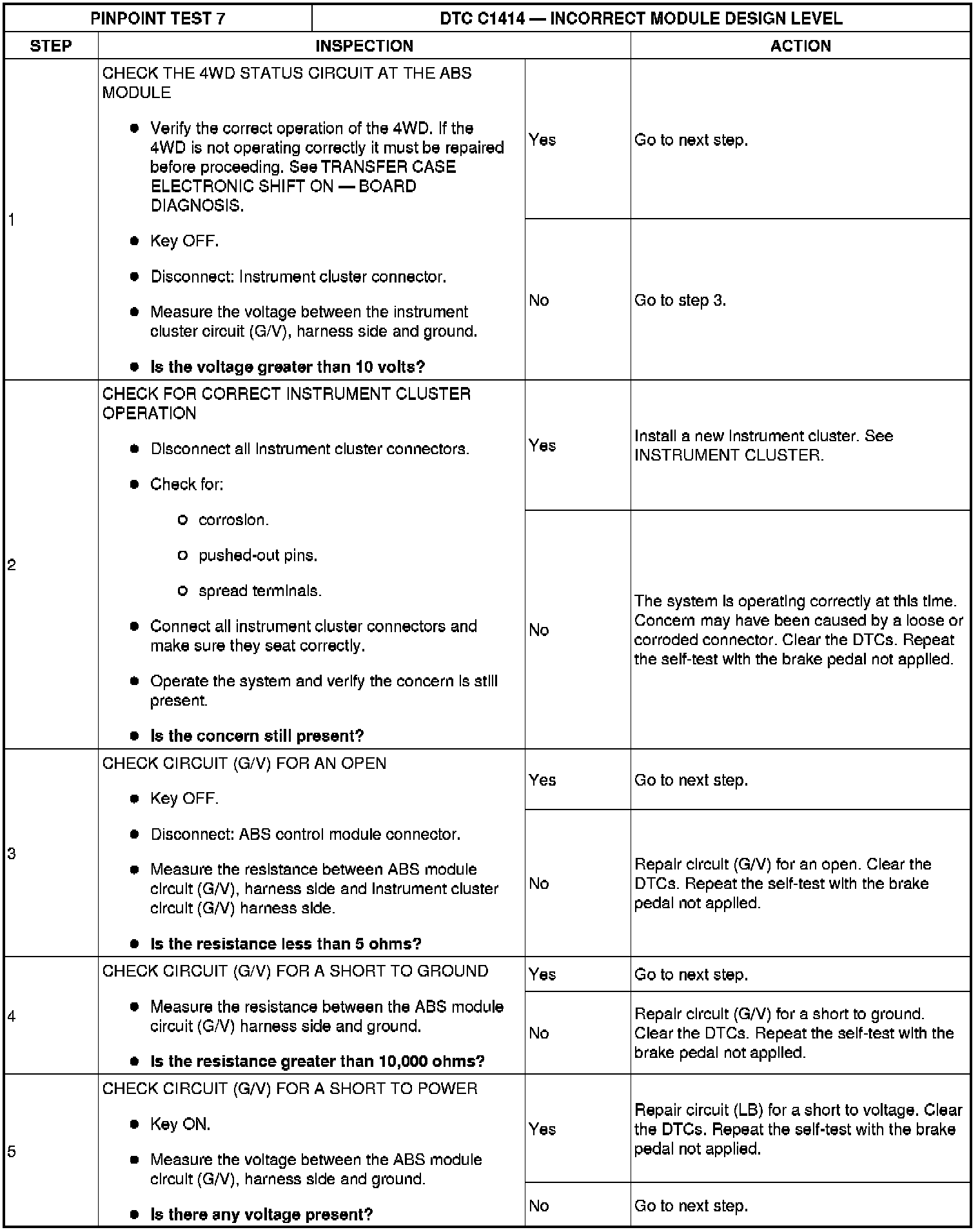 PINPOINT TEST 7: DTC C1414: INCORRECT MODULE DESIGN LEVEL