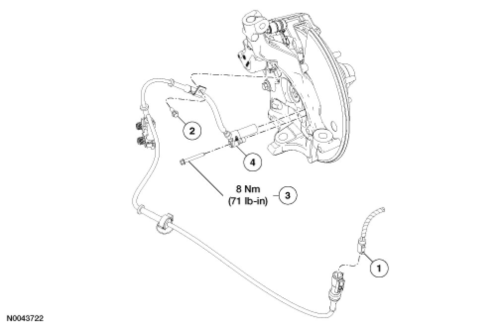 4. Remove the wheel speed sensor harness bolt and unclip the retainers.