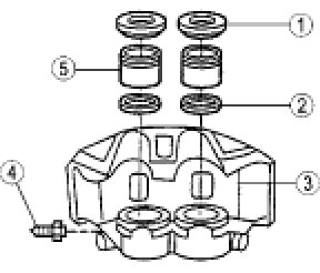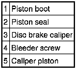 1. Lubricate the piston boot, caliper piston, piston seal, and cylinder bores with appropriate brake fluid.