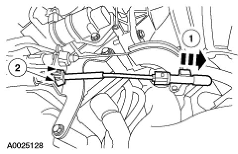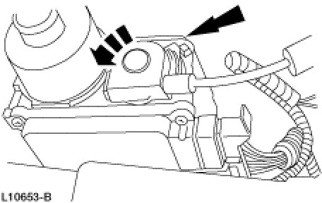 - Press the locking tabs and separate the cruise control cable from the intake manifold.