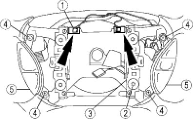 NOTE:Install ground eyelet under upper screw on right-hand switch. Position switch(es) on steering wheel and install four Phillips-head attaching screws.Install in reverse order of removal.