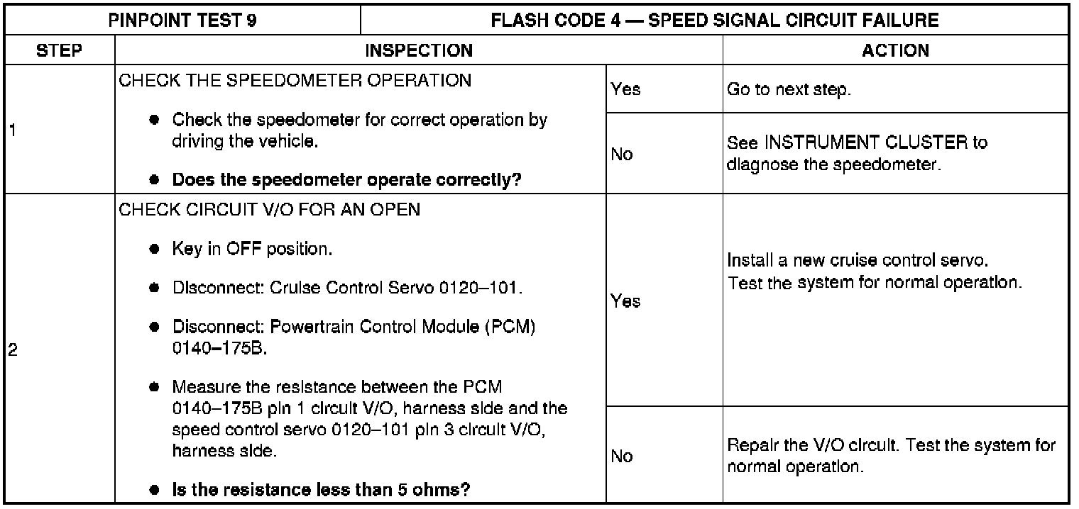 Pinpoint Test 9: Flash Code 4 - Speed Signal Circuit Failure